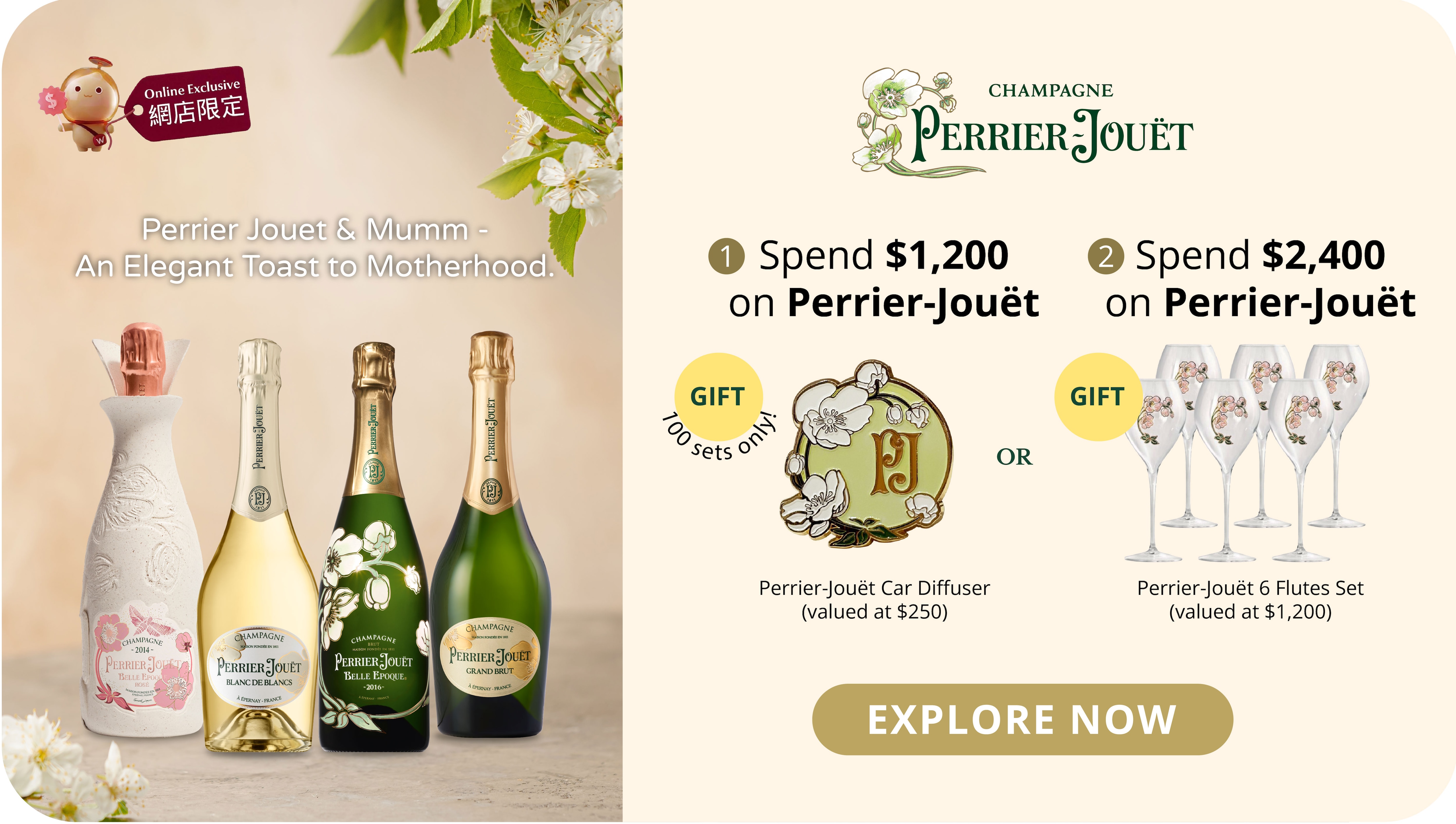 Get a FREE Champagne Glass Box Set of 2 upon buying any 3 btls.